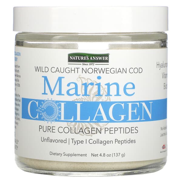 Our unflavored collagen provides the purest source of collagen peptides that are completely suitable for those who want high-quality marine collagen. Nature's Answer Marine Collage is combined with Hyaluronic Acid, Biotin, Vitamin C and additional beauty enhancing ingredients.
